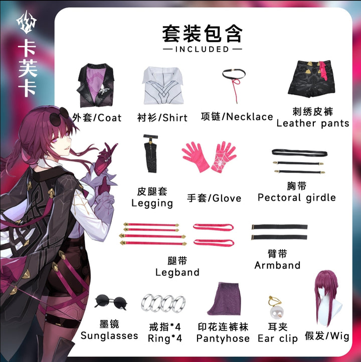 - Costume Set: Includes a stylish coat, top, shorts, and embroidered details, all designed to replicate Kafka’s iconic look from Honkai: Star Rail.